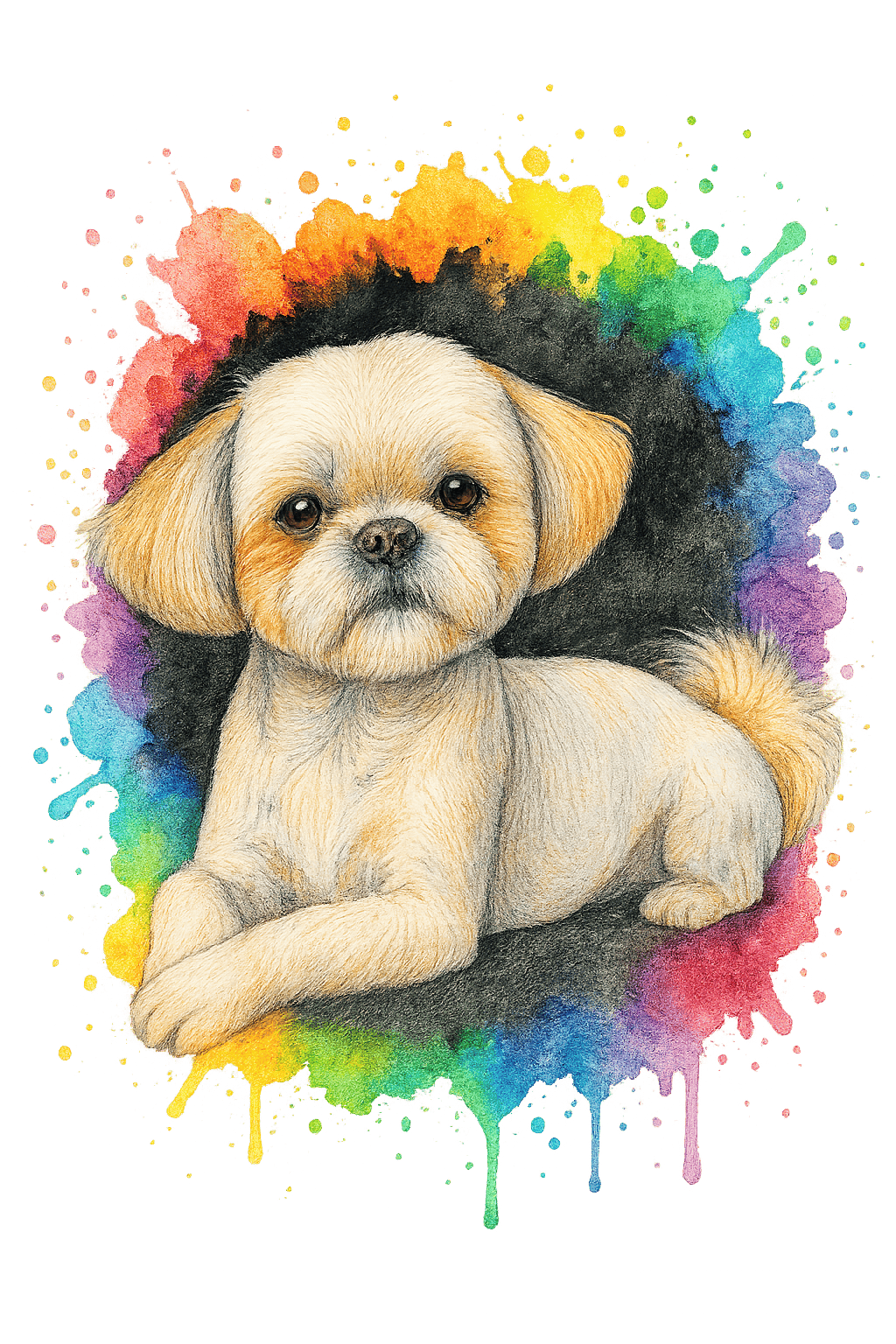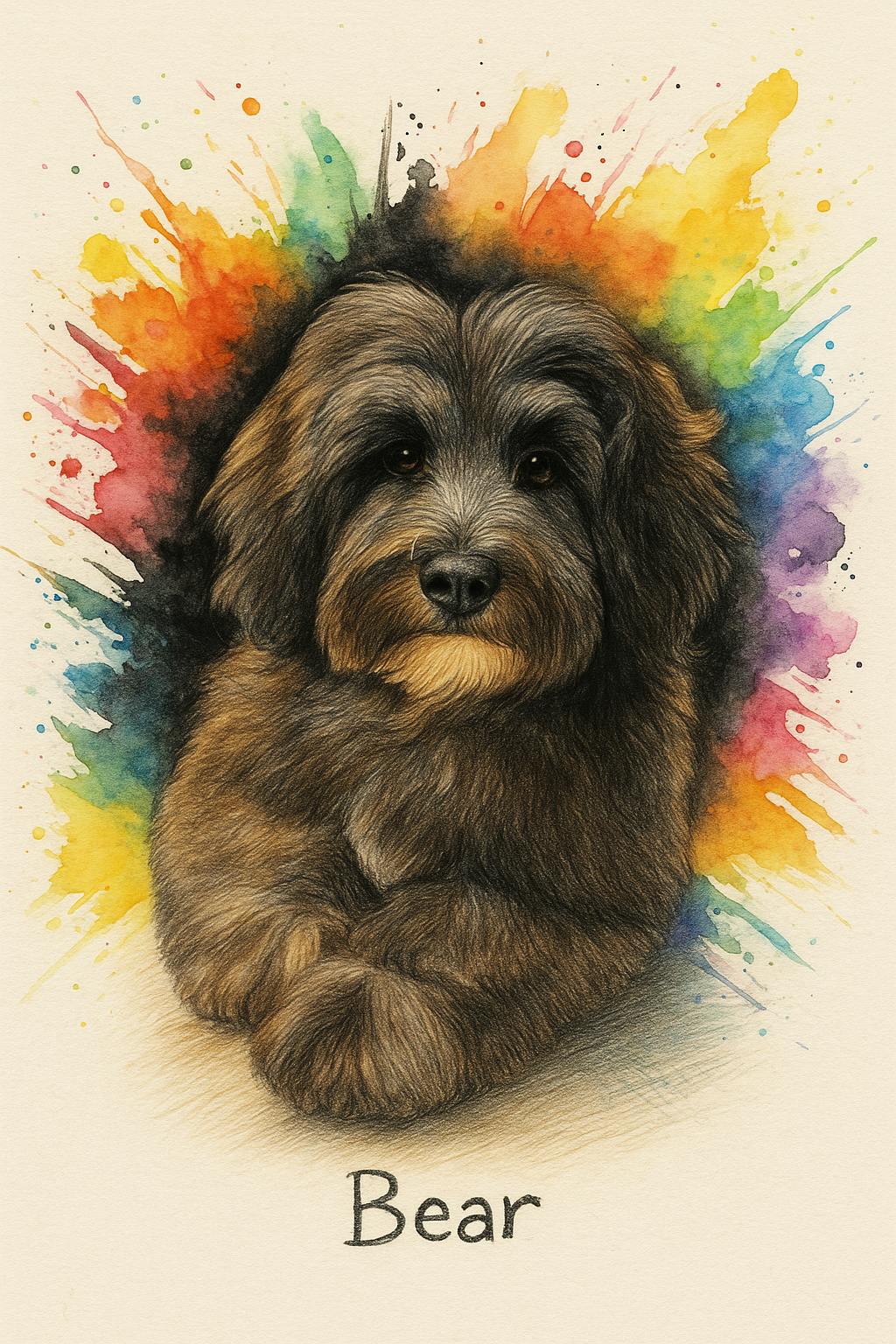 Dynamique, moderne et coloré, ce portrait abstrait de style splash transforme votre animal de compagnie en une œuvre d'art vibrante.