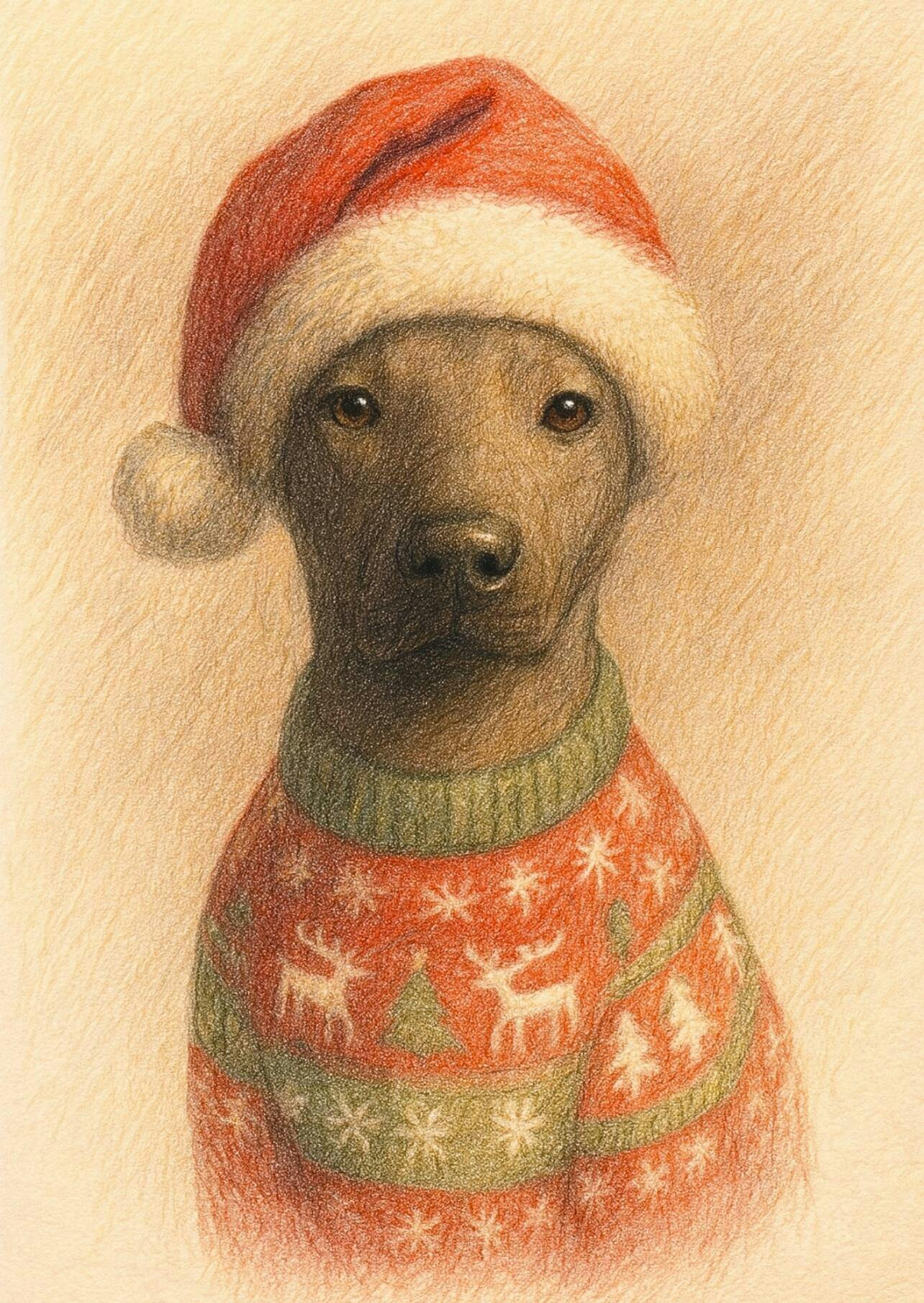 Turn your beloved pet into the ultimate holiday star with this joyful, custom Christmas-themed portrait. Capturing the spirit of the season, this stunning artwork transforms your furry friend into a festive figure ready to spread cheer, dressed in a cozy sweater and a classic Santa hat. It is a perfect, unique celebration of your pet's place in your family's holiday traditions.