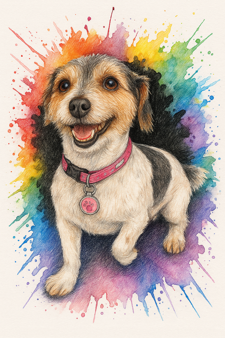 Dynamic, modern, and colorful — this abstract splash-style portrait turns your pet into a piece of vibrant art.