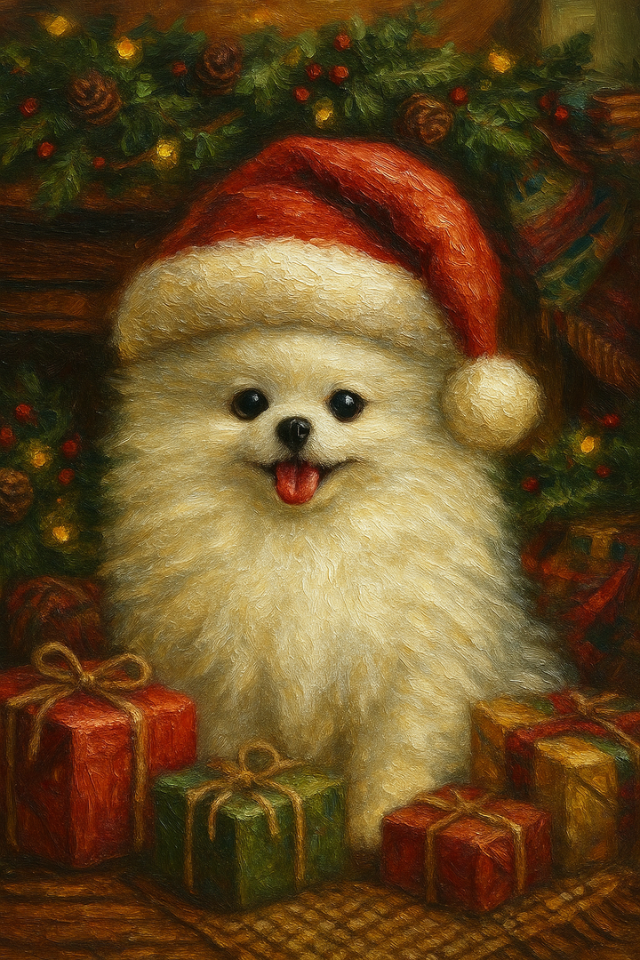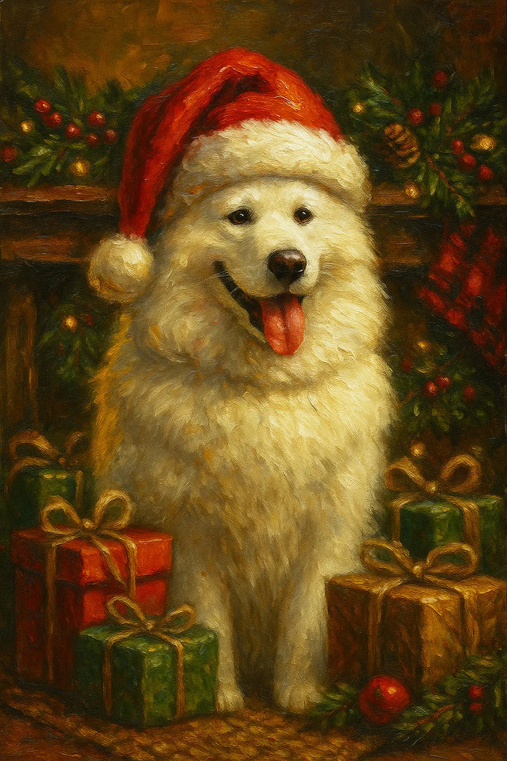A richly textured, festive portrait of the holidays, blending rustic, handcrafted charm with a luminous, traditional oil-painted finish.