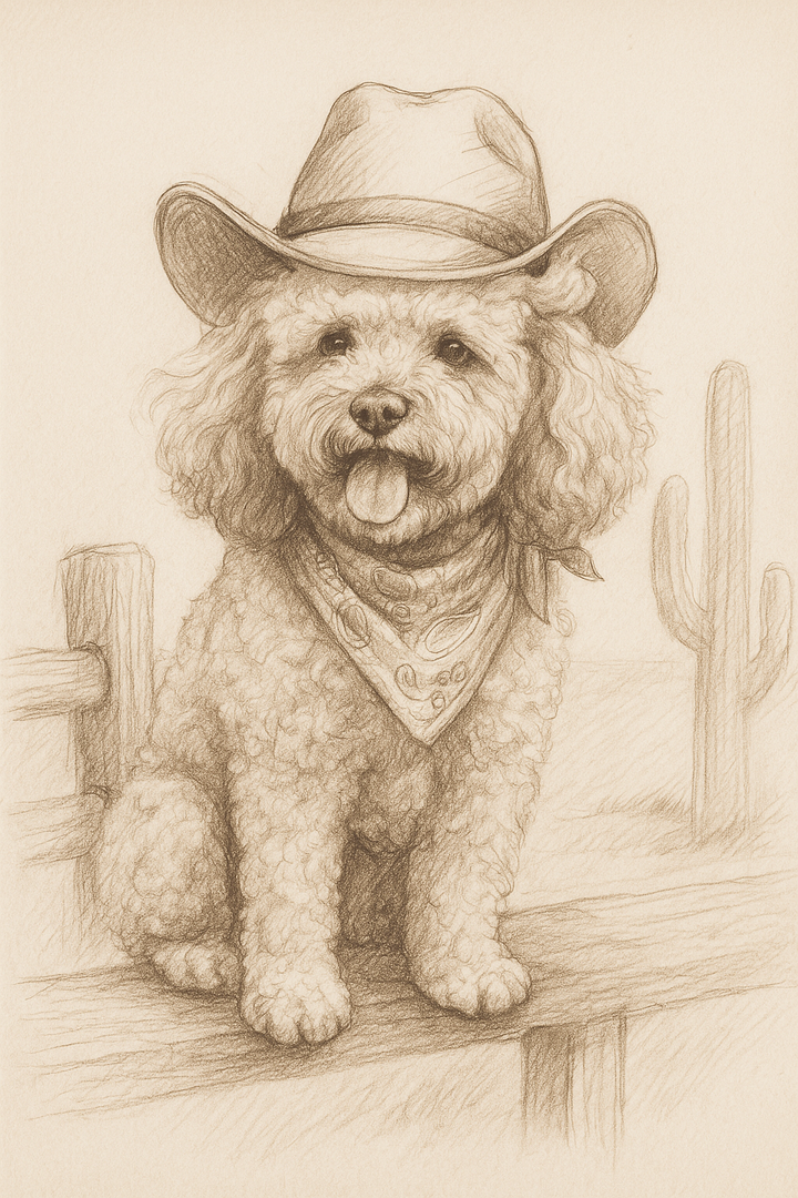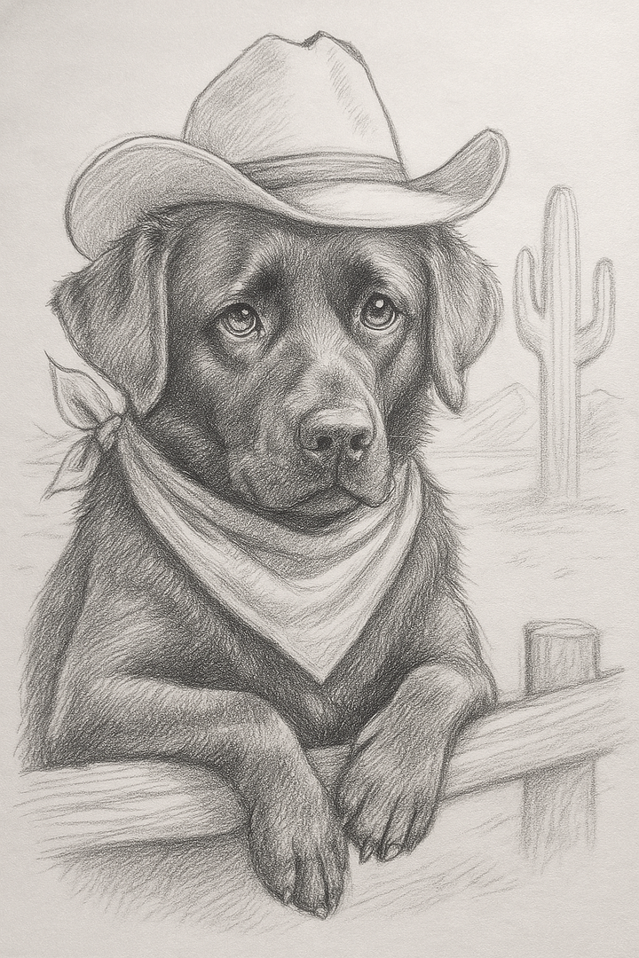Western-style portrait featuring your pet in a cowboy hat or sheriff outfit — rustic, funny, and full of charm.